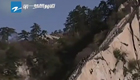 实拍华山环卫工人峭壁上捡垃圾