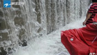杭州街头积水成"瀑布"