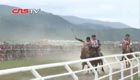 实拍云南藏区端午雨中赛马祈福