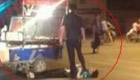 城管将摊贩踩在脚下 称是失足踩到