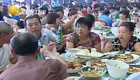 【解说】在售票处门口,记者见到了这位家住榆树的潘先生,潘先生和他的10多位同乡到温州打工,没想到下午刚到长春,就听说列车停运的消息,他们也刚刚退了火车票,但不敢远走,怕错过火车。潘先生说,既然已经知道走不了了,他和同乡干脆席地而坐,乐呵呵的准备喝点酒,解解乏。