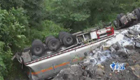 湖北载23吨汽油罐车侧翻悬崖1死3伤
