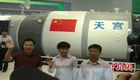 “神九”的三位航天员景海鹏、刘旺、刘洋14日早上参观航天展览馆,并在天宫一号模型前合影留念。不少观众和媒体记者聚集在展位前,场面混乱。三位航天员一度躲在中国航天工业展位办公室里。现场维持秩序的人员由保安变成特警都难以抵挡群众的热情。三位航天员逗留20多分钟后离开。