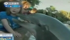 男子发现鸭子被冻湖面 跳湖破冰救援