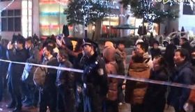 拍客:上海街头鲨鱼缸爆裂伤15人