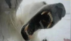 男子发现鸭子被冻湖面 跳湖破冰救援
