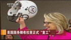 希拉里时隔一月重回工作岗位 获赠防护头盔