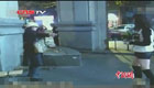【解说】当时黑衣女的手已经被割伤,鲜血直流,嘴里嘟嘟囔囔。有人想去劝阻,但是都被黑衣女子用剪刀逼了回来,随着围观的路人越来越多,黑衣女子竟然开始撒钞票。就在这时,从人群中突然闪出一个女孩,看起来年纪不到二十岁,身穿羽绒坎肩,足蹬厚底长靴,而最让人眼前一亮的是,女孩下身只穿一条紧身短裤,在寒风中露出两条美腿,短裤女孩先是要回洒下的钞票,然后拿着钱向黑衣女慢慢走了过去,这时黑衣女手中的剪刀对准了短裤女孩,就在危机时刻,短裤女孩毫无惧色,看似柔弱的女孩亮出了真功夫,
