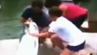 男子发现鸭子被冻湖面 跳湖破冰救援
