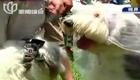 男子发现鸭子被冻湖面 跳湖破冰救援