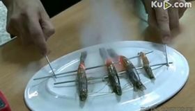 拍客:男子用身体导电烤大虾