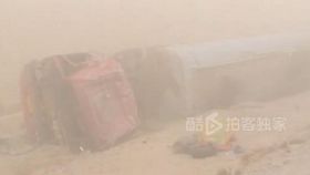 沙尘暴撂倒30吨油罐车