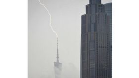 广州塔被闪电击中 诡异天气白昼如夜
