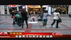 男子:我扮演这个,行为艺术表演的目的是,是因为现在的生活压力很大嘛,真的是压力山大。