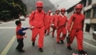 【解说】由于现场没有灯光照明,天黑视线不好,6名消防员在海边进行地毯式推进搜寻。5分钟后,队员在海泥中发现了深陷泥潭的小李。他的下半身已经完全陷入了泥中,上半身依靠在朋友小赵的怀中,因时间太长,小赵已经体力不支。小赵两个手插入了这名女子的腋下,防止她下沉。现场的消防队员立即拿来了梯子和安全绳,并把安全绳绑在了小李的腋下。