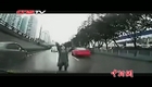 口播:假装被车撞,然后向车主骗钱,这样的碰瓷的行为,咱们经常听说,但是干这一行的人,通常动作很专业,冲出来的时候也得稳准狠,免得让人看出破绽,但是,下面这位女子碰瓷的动作太业余了,真够浮夸的。