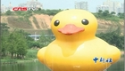 重庆高温:山寨“大黄鸭”率队戏水秀清凉