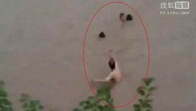 男子发现鸭子被冻湖面 跳湖破冰救援