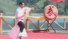 【解说】台上11大掌门的表演没有唤起观众的热情,相反,后来上台的新疆天山派高手大显身手,空手劈木板绝技,观众大呼过瘾。