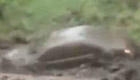 男子发现鸭子被冻湖面 跳湖破冰救援