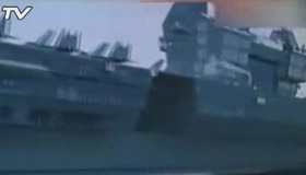 【解说】“维克兰特”号航母排水量为4万吨,全长260米,它拥有两条起飞跑道和一条降落跑道,将搭载研制中的国产战机、米格-29和一系列直升机。美国“防务新闻网”援引一名印度海军消息人士的话透露,“维克兰特”号本周下水时,该舰实际上只完工了30%。 “维克兰特”号起初预算只有5亿美元,最后总成本却超过50亿美元。报道推测,航母的服役时间很可能在2020年前后。