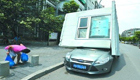 实拍:宝马车追尾小货车 百根钢筋穿透车身