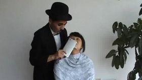 农民工扮卓别林互动搞笑表演