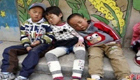 由于没有专门的休息场所,青海省湟中县 海子沟乡王家庄幼教点的孩子们只能在教室的墙根下午睡。老师们说,教室里阴暗潮湿,孩子午睡容易感冒,所以就在外面靠墙睡。