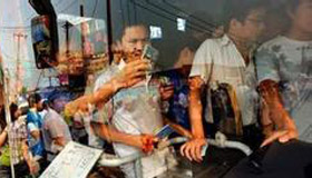 【解说】管庄远洋一方小区至国贸方向单次乘车价格是8块钱,预订一个月的定制公交,在网上支付还有8折优惠。9日上午该线路共有三辆班车,每车有26个座位,共有60多名乘客乘坐。早在8月份,公交集团开始在网上招募乘客,然后根据客流调研的统计和具体的报名人数制定了目前的路线和车辆。据了解,当天一共开通了三个方向七个班次,10日、11日还将有三个方向三个班次的商务班车开通。