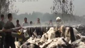 棉花货车起火:消防灭火 村民哄抢