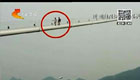 男子发现鸭子被冻湖面 跳湖破冰救援