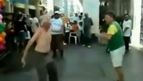 两男子当街隔空对打 笑翻你