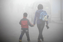 标题:东北多地遭雾霾侵袭 哈尔滨中小学校停课