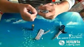 神奇一幕 用电池锡纸取火