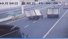 实拍:货车跨海大桥上“玩”漂移终侧翻