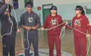 女选手双脚射箭献技吴桥杂技节