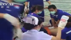 美女主持人直播球赛 被足球砸中脑袋