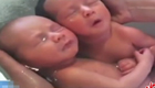 【龙凤胎新生儿洗澡 紧紧依偎】