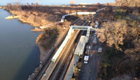 航拍美国纽约一客运列车脱轨 车厢坠河