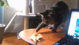 猫咪玩香蕉皮