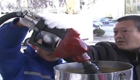 男子发现鸭子被冻湖面 跳湖破冰救援