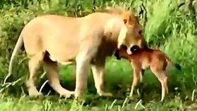母狮抓到小牛羚后“不知所措”