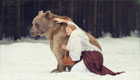 近日一套霸气侧漏的国外美女与熊合影的cosplay走火网络,看过的人无不称其惊艳。这位俄罗斯美少女Coser,为了重现《勇敢传说》中女主角的Cosplay,花费15000美元考取了驯兽师执照。找来了一只活熊与她拍摄了这组在冰雪中野性十足的cosplay照片,更与熊舌吻。