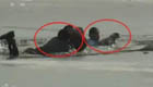 男子发现鸭子被冻湖面 跳湖破冰救援