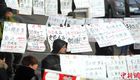 【解说】与场内企业招聘不同,场外是求职者在地上摆出信息等待招聘者,不过一排排信息前,鲜有人问津。