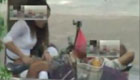 美女主持人直播球赛 被足球砸中脑袋