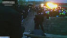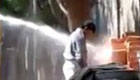 实拍印度男子当街大小便遭水炮喷射满地打滚