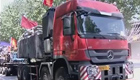 山东"巨无霸"货车亮相 长达120米352个车轮