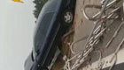 实拍:司机春困打盹 轿车"骑上"中央护栏