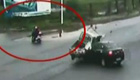监拍:轿车疯狂撞飞货车 路人奇迹躲过